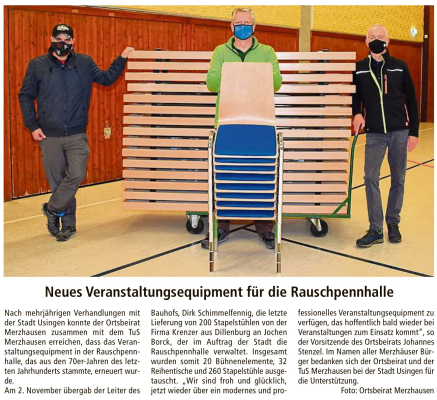 10.11.2020 - Usinger Anzeiger - neues Veranstaltungsequipment für die Rauschpennhalle