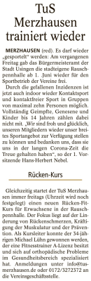 09.01.2021 - Usinger Anzeiger - Online-Sport des TuS geht bis Ende Januar weiter