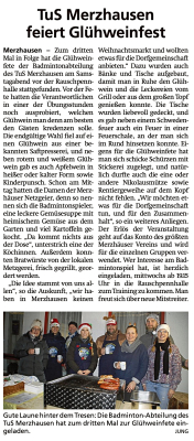 15.12.2025 - Usinger neue Presse - TuS Merzhausen Glühweinfest 2025