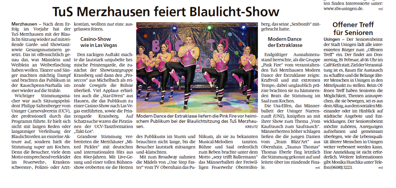 14.02.2026 - Usinger Neue Presse - Fasching Blaulichtsitzung