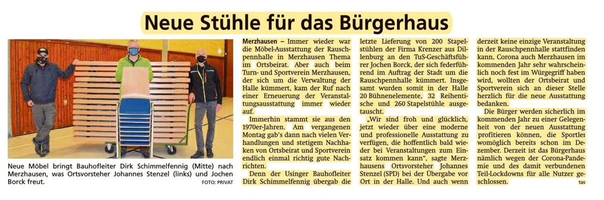 04.11.2020 - Usinger neue Presse - neue Stühle für das Bürgerhaus
