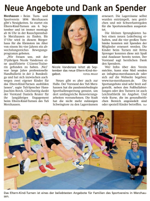 25.06.2021 - Usinger Anzeiger - neue Sportgeräte für kleine Turner