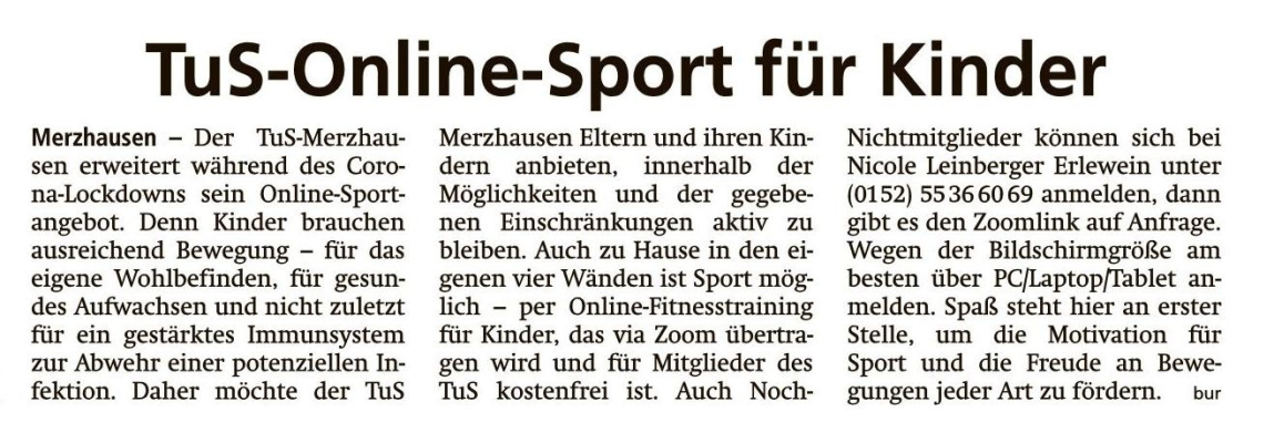 19.11.2020 - Usinger neue Presse - TuS Online-Sport für Kinder