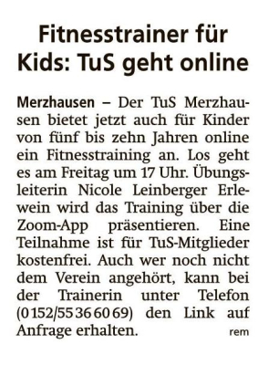 19.11.2020 - Usinger neue Presse - Fitnesstrainer für Kids; TuS geht online